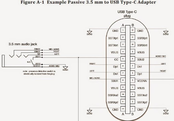 當CC pin兩個都接了下拉電阻《=Ra,DFP進入音頻配件模式,左右聲道,mic都俱全,如上圖。
