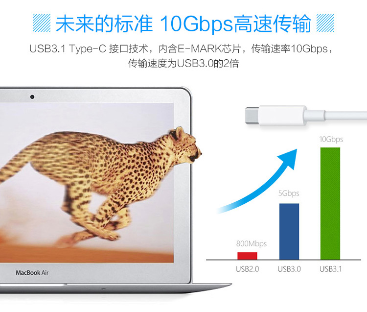 德立華的USB Type-C數據線不僅將傳輸帶寬從USB 3.0 5Gbps 翻番到了10Gbps,傳輸速度為普通USB3.0的2倍。連接線可通過的電流峰值可達到3A,縮短充電時間的同時還不會損壞設備,特別適合當下城市快節奏生活。