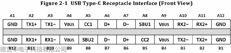圖1 USB TYPE-C母座引腳圖摘自USB TYPE-C SPEC