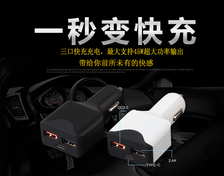 當(dāng)然,想要做好一款有品質(zhì)的產(chǎn)品光有外觀還是不夠的。在充電方面接口,采用智能USB接口,TYPE-C接口:5V/3A,QC3.0接口采用智能充電可為產(chǎn)品選擇最佳的充電方式進(jìn)行充電5V2A.9V2A.12V1.5A 接口3為:5V2.4A,滿足你的充電時間。