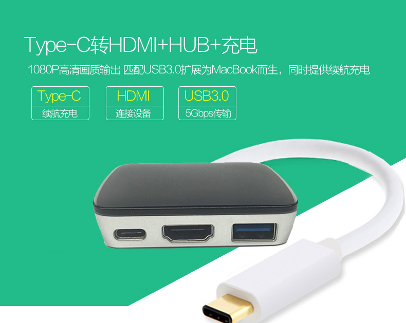 功能特點:接駁雷電3接口使筆記本可通過HDMI線輸出視頻