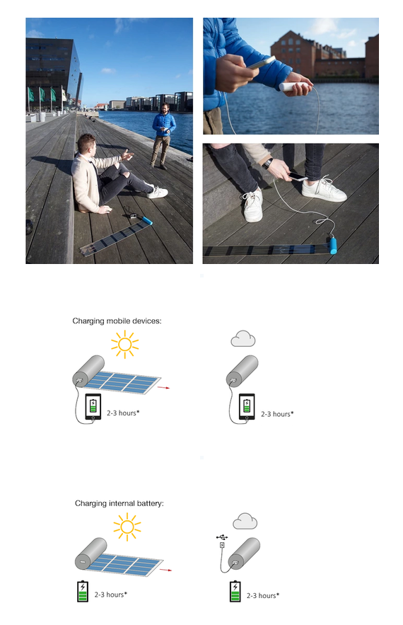當(dāng)你必要為手機(jī)充電時(shí),你可以將 HeLi-on 睜開,就如統(tǒng)一幅畫卷一樣,讓 HeLi-on 和手機(jī)恣意洗浴在陽光底下,網(wǎng)絡(luò)太陽能。要是表面烏云密布沒有陽光也沒干系,此時(shí)你可以將 HeLi-on 看成一個平凡移動電源利用。