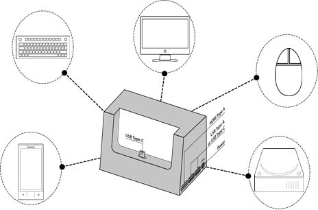 擴展塢 : 配有一個Type-C插頭、多個USB的集線器和MHL、HDMI、DVI及VGA等視頻輸出連接器。