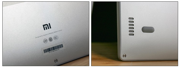小米筆記本Air 13機身D面的設計同樣十分簡約,5個橡膠腳墊,一排散熱進風孔,底角兩個AKG定制揚聲器,沒有任何多余的設計。此外,機身底部同樣擁有小米的logo。經過體驗,小米筆記本的揚聲器確實音量洪大,且AKG定制的揚聲器的音效也足夠給力,低音飽滿,高音通透,是筆者見到過的音質較為出色的筆記本機型之一。不過,機身底部蓋板與邊框的縫隙存在不均勻的情況,望在量產機型中解決。