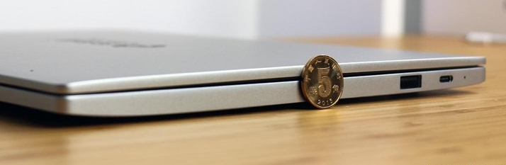 機身厚度方面,小米筆記本Air 13僅14.8mm厚度比5角錢硬幣直徑要小很多。相比同尺寸輕薄本來看,小米筆記本Air 13的輕薄表現算是較為不錯的,只不過感官上沒有其它機型那么強烈,相信若采用弧形收邊設計則能帶來更佳的視覺體驗。此外,筆者還發現在合蓋時,機身右側的中間區域的縫隙較大,而機身左側控制的則相對較佳。
