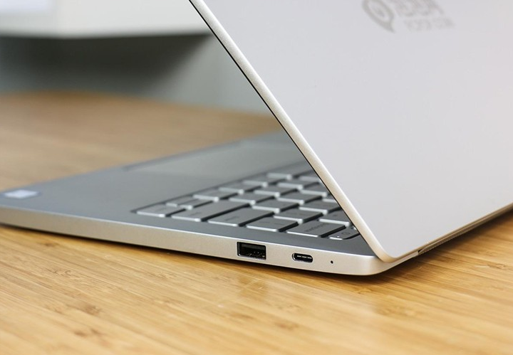 而機身右側則擁有USB 3.0接口和一個USB Type C,同時最右側還擁有一個電源指示燈,用于查看電量狀態。其中USB Type C規格為USB 3.1 Gen1,最大速率為5Gb/s,速率上等同于USB 3.0。綜合來看,小米筆記本Air 13的接口數量相比同尺寸輕薄本來說基本屬于同一水準。不過可能是考慮到大部分消費者對SD卡槽的使用率并不高的緣故,該機沒有配備SD卡槽,稍有遺憾。